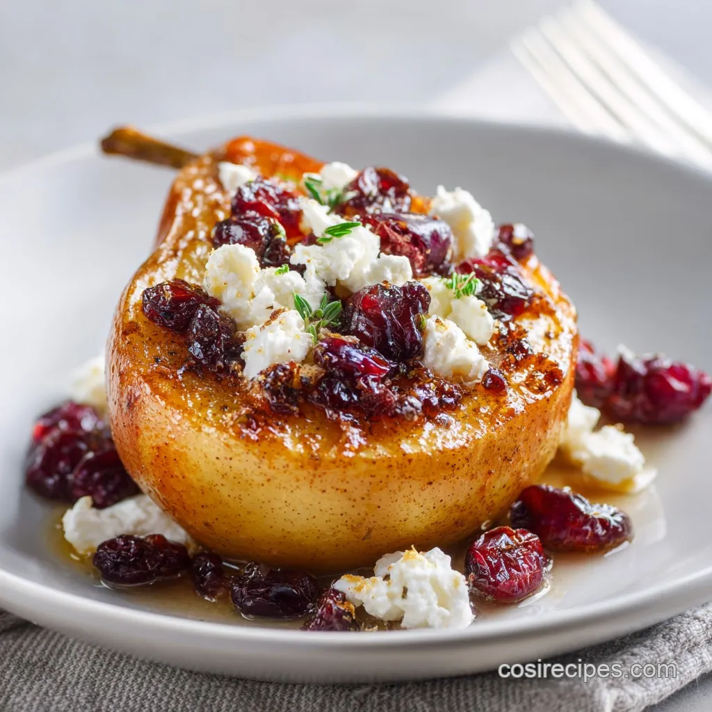 This Baked Pear with Feta Honey and Cranberries recipe offers a delightful sweet and savory combination. When the honey hits the hot pear juice, it creates this mahogany glaze that coats the back of a spoon. Adding feta might sound weird if you're used to only sweet desserts, but trust me on this one.
