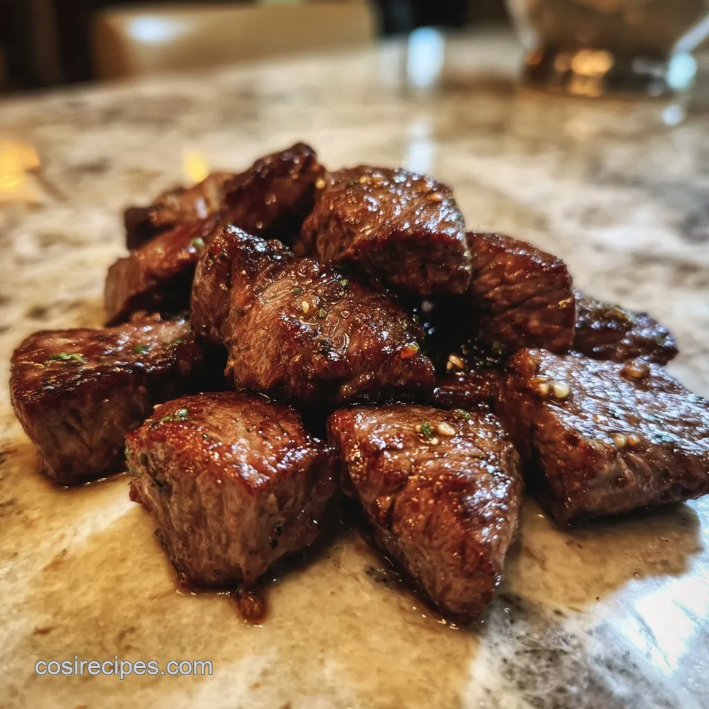 The resting period is one of those steps people often skip when they're hungry, but it's vital for a succulent result. When you cook meat, the muscle fibers tighten and push the juices toward the center. If you cut into those steak bites immediately, all that flavorful juice runs out onto the plate.