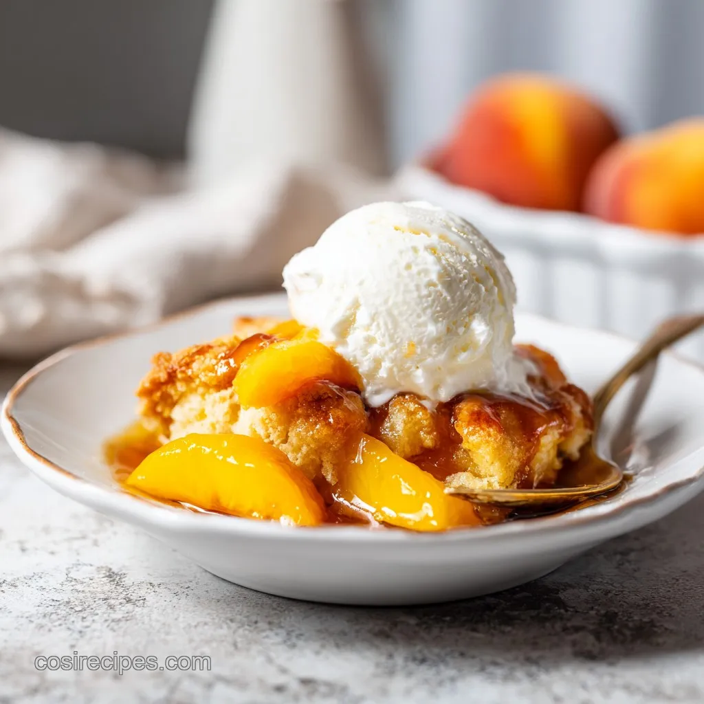The classic way to enjoy this is "a la mode" topped with a massive scoop of high-quality vanilla bean ice cream. The heat from the cobbler melts the ice cream into a creamy sauce that swirls with the peach syrup. It’s a sensory experience that is hard to put into words without using forbidden adjectives.