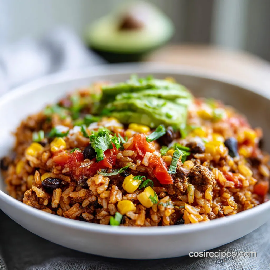 Typically ground beef, rice, lettuce, tomatoes, cheese, and avocado. The foundational recipe requires long grain rice simmered in bone broth, and lean ground beef seasoned with chili powder and smoked paprika.